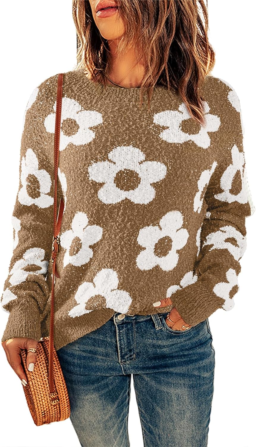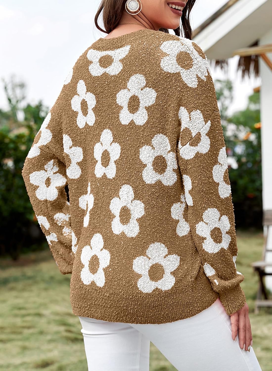 Flowers Sweater Ivory Flora Crewneck Cute Casual Long Sleeve Fall Winter Knitted Pullover Tops