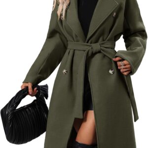 Women Elegant Wool Pea Coat Lapel Collar Double Breasted Mid-Long Winter Overcoats with Belted Pockets
