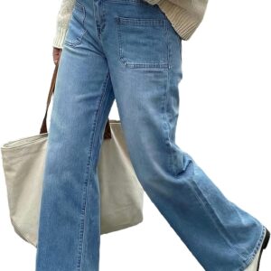 • Relaxed Fit: Wide-leg design a perfect length flatters all body types, elongates legs, and offers flexible and effortless movement.Front pocket details, high waisted with adjustable buttons and a horizontal seam at the waist, create a fashion-forward look.