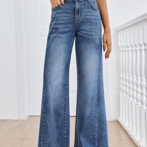 - Retro Flare Silhouette & Stretch Waist: Featuring a mid-rise waist and a relaxed fit that elegantly flares from the knee down with a raw hem, creating a vintage-inspired look. The combination of a button fly and a stretch waistband offers easy wear and a forgiving fit. Functional front and back pockets complete the classic denim aesthetic