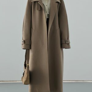 - Winter casual wool coat for women, featuring front invisible button down closure, stand collar with button belt, long raglan sleeve, 2 side entry hand pockets, below knee length.